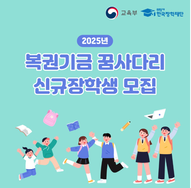 ※ 즉시 보도하여 주시기 바랍니다. 「복권기금 꿈사다리」 신규 장학생 모집! - 신청기간 2025. 4. 7.(월) 9시 ~ 2025. 4. 30.(수) 18시 - ◆ 한번 선발되면, 대학 졸업까지 지원 ◆ 매월 장학금(초 15만원,
