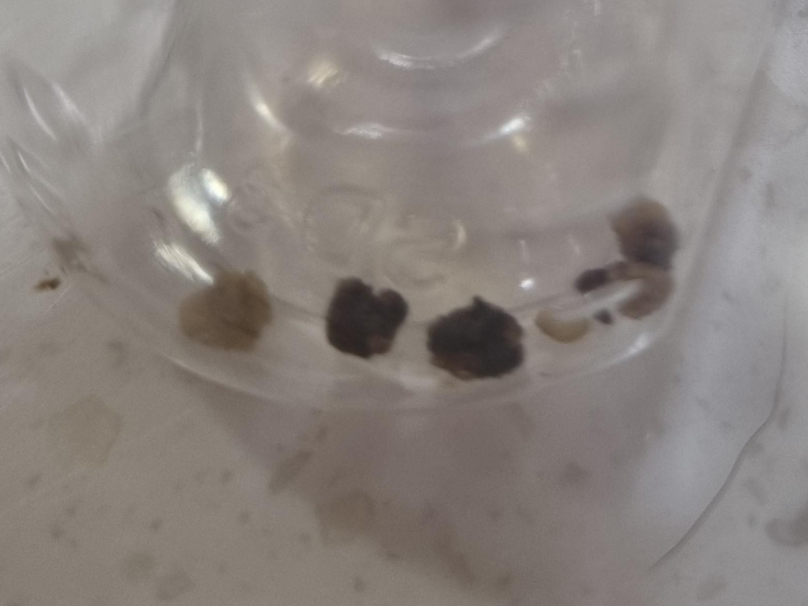 봉순이의 병원에서 실제로 방광결석을 가진 다른 반려견의 사례를 보았는데, 결석 표면이 뾰족하여 상당한 통증을 유발할 수 있음을 확인하였다.
